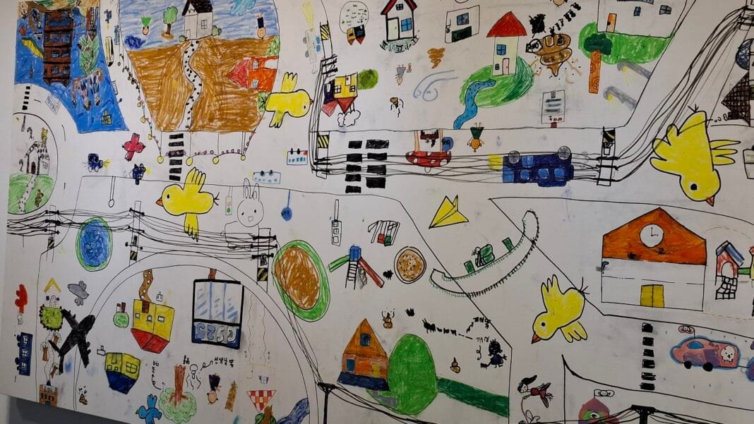 이번 전시회는 총 8차시로 진행된 미술교실의 결과물을 공유하는 자리로 마련됐다. 전시장에는 어린이들이 겨울방학 동안 작업한 그리기·만들기를 비롯해 폐품 활용 작품, 합동 작품, 종이공예, 박스 활용 공작품 등이 전시돼 관람객들의 눈길을 끌었다.