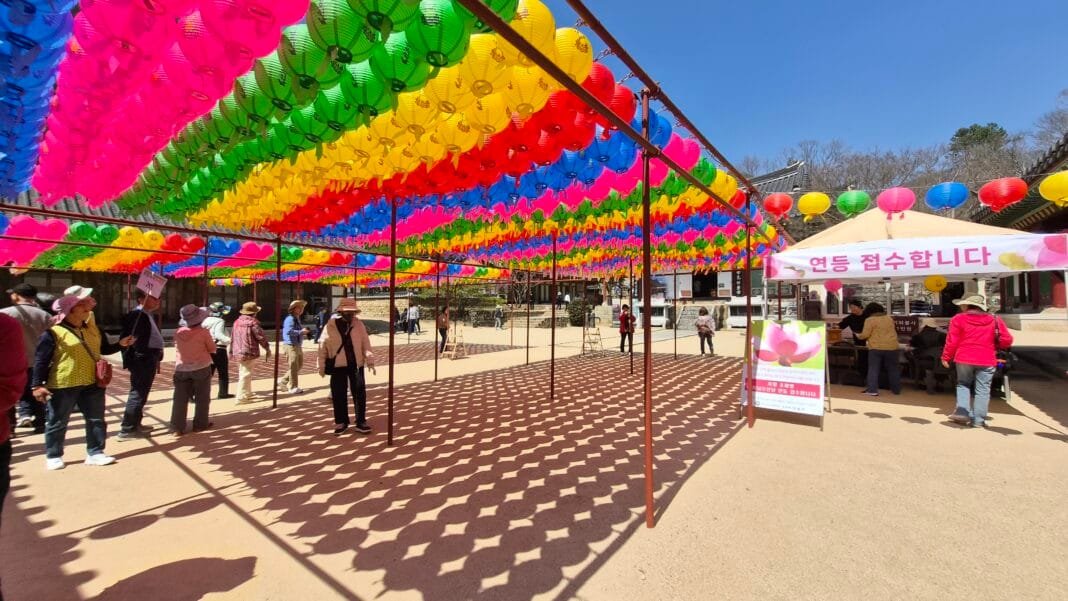 사월 초파일을 앞두고 천은사 앞마당에 매달아 놓은 연등의 그림자가 바둑판 모양 같았다. 사진=김영근