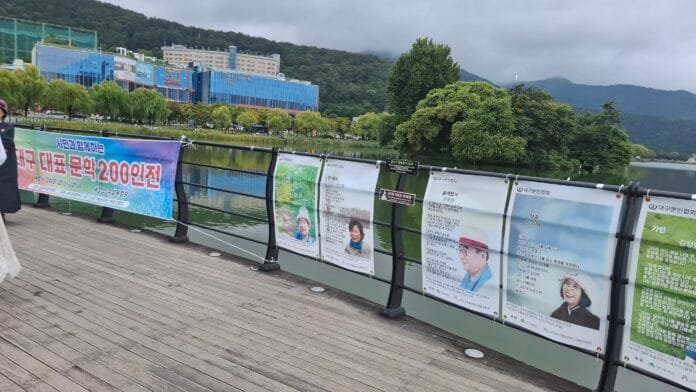 ‘대구 대표 문인 200인전’ 순회 전시회가 10월 4일 오후 2시 수성관광호텔 입구 수성못 데크길에서 개막식을 열고 시민들의 관심 속에 막 올린 데 이어 16일까지 전시를 이어간다.